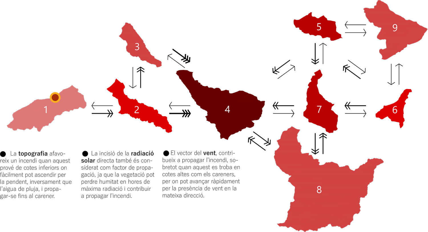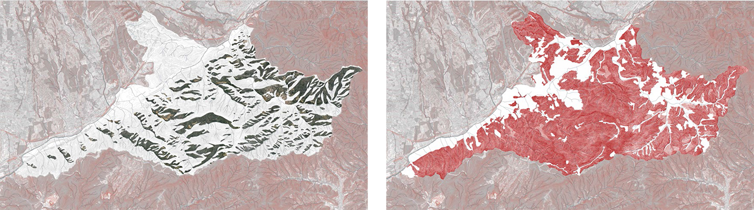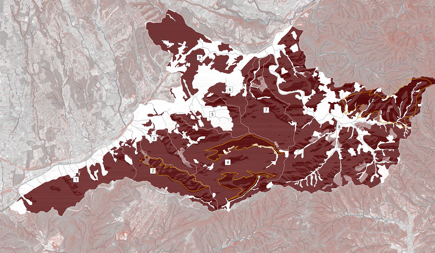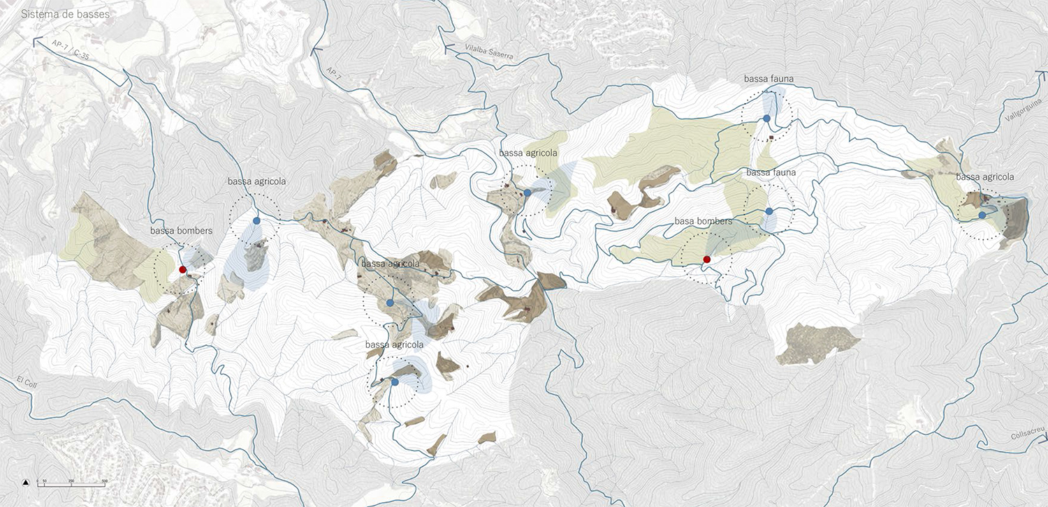 Estudi de les dinàmiques del paisatge i proposta de transformació per a la reactivació del territori i adaptació al nou escenari de canvi climàtic global. Al workshop de Wildfirescapes realitzem l'anàlisi d'incendis de la zona, dibuixant els polígons de propagació i estudiem a través de les característiques de la vegetació, la vulnerabilitat del àrea. La proposta segueix per cartografiar els valors existents del lloc, per a poder prioritzar les actuacions de gestió del territori envers l'emergència global.